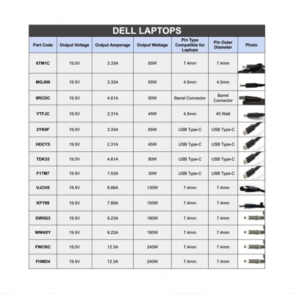 - Wide Compatibility: The 4.5mm small pin connector is compatible with various Dell laptop models, including Inspiron, Latitude, and Vostro series. Check your laptop’s specifications for compatibility.