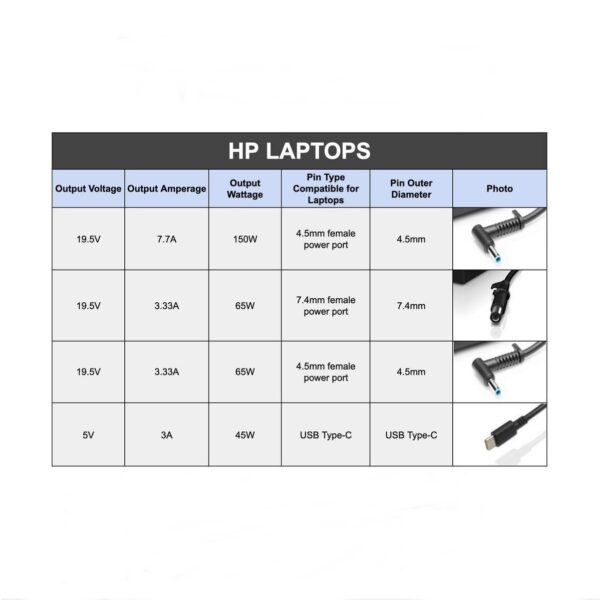 - Compatibility: The 7.4mm pin connector is compatible with a variety of HP laptop models, including popular series such as HP Pavilion, HP Envy, and HP ProBook. Check your laptop’s specifications to ensure compatibility.